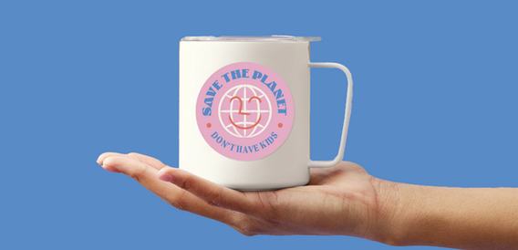 The goal of the design was to represent this happy, independent and confident persona, while also subtly highlighting the positive effects of childlessness; extra wealth, freedom to travel, and the positive environmental impact.